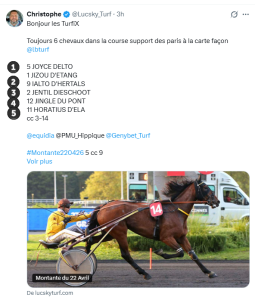 Encore un post à l’arrache désolé prise de fonction dans un nouveau poste Cheval de la montante : 16 cc 14 Quinté : 8-16-14-3-5-9 cc...