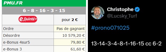 Encore une double déception, mon choix de montante et favori tombe dès la 1ère haie, si vous ajoutez à çà que le Quinté était donné en 9 chevaux, quand on voit les rapports on pleure…