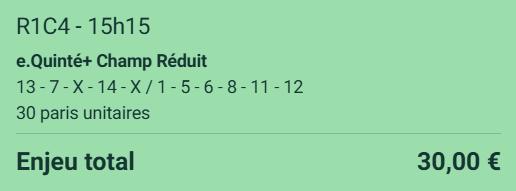 Mon Quinté en 6 chevaux : 13-7-6-14-12-1 cc 5-11