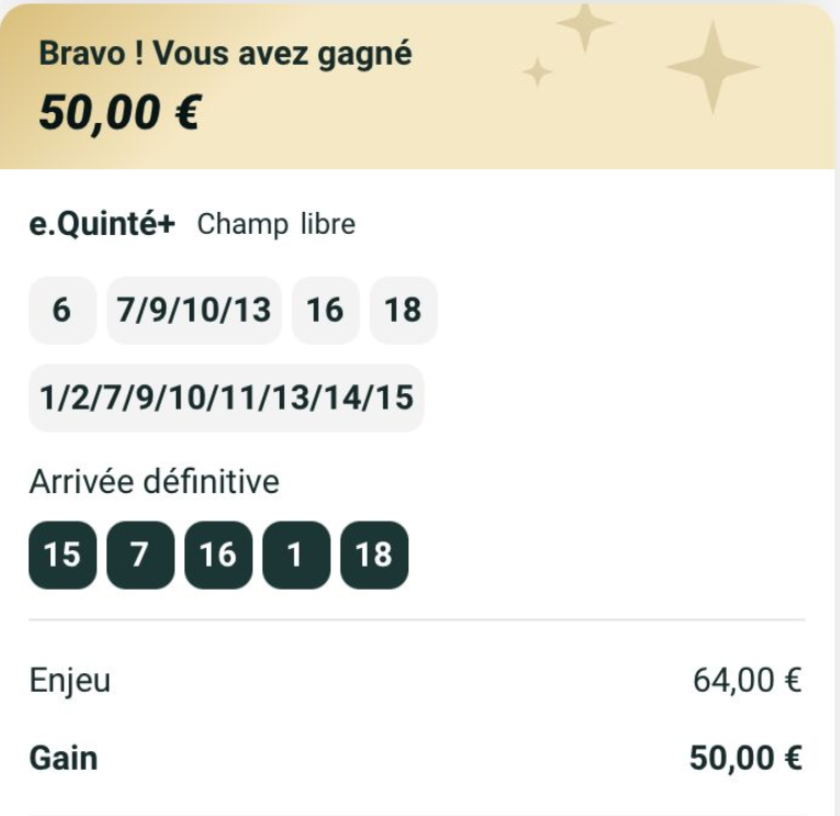 Mon Quinté en 6 chevaux : 1-4-5-9-6-2 cc 13-15
