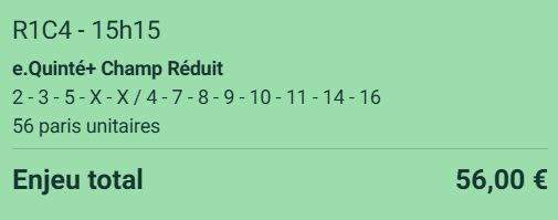 Mon Quinté en 6 chevaux : 2-3-5-16-4-10 cc 11-14