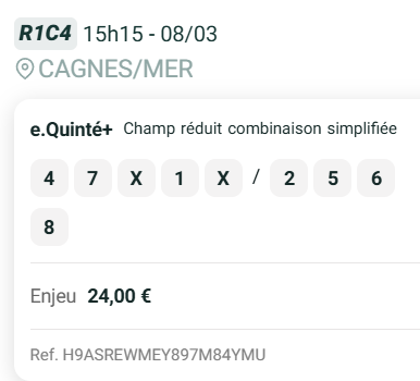 Mon Quinté en 6 chevaux : 4-7-5-1-8-2 cc 6-12