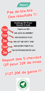 Une belle journée pour ce dimanche. Commençons par la première qualification du Prix d’Amérique, un résultat un peu mitigé, j’ai voulu tenter l’impasse sur SAM...
