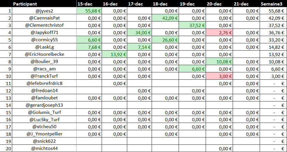 Classement Semaine 3 Décembre 2025