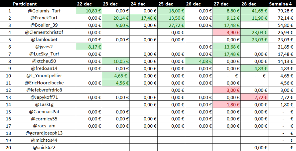 Classement Semaine 4 Décembre 2025